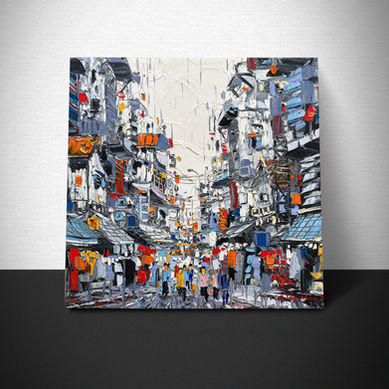 Les rues principales et secondaires , ainsi que les coins des vieilles rues de Hanoï sont entrées des ses œuvres comme un amour durable, évoluant et changeant avec le temps et les années.
