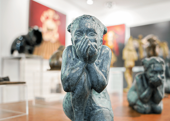 Depuis 1982, Mauricette Toussaint n’a jamais cessé d’explorer à l’infini la richesse de ce matériau. Elle travaille sans modèle. Ses sculptures jaillissent d’une visualisation intérieure. Recherche de la vie à travers toutes ses expressions. Beaucoup de femmes, aux courbes harmonieuses, mais aussi quelques hommes, heureux de vivre…